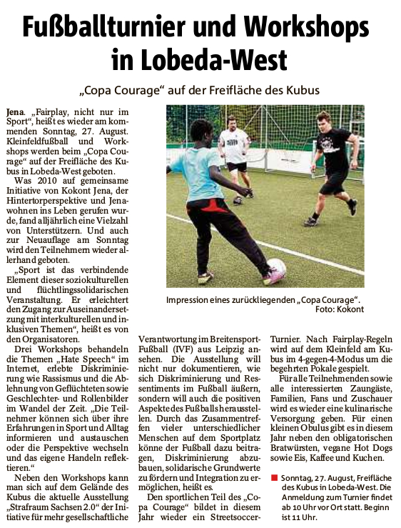 Fußballturnier und Workshops in Lobeda-West – OTZ – 24.08.2017